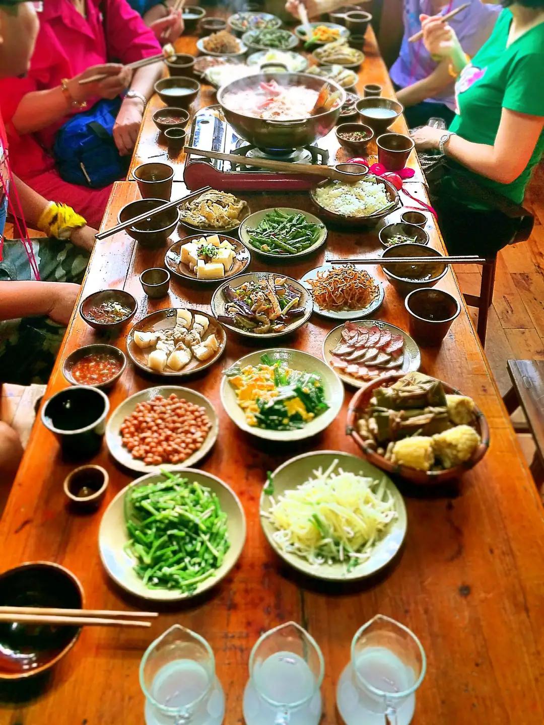 吃得安心西江安排特色長(zhǎng)桌宴酸湯魚(yú)火鍋品苗家米酒,體驗(yàn)苗寨人家的“高山流水”,感受苗妹的熱情