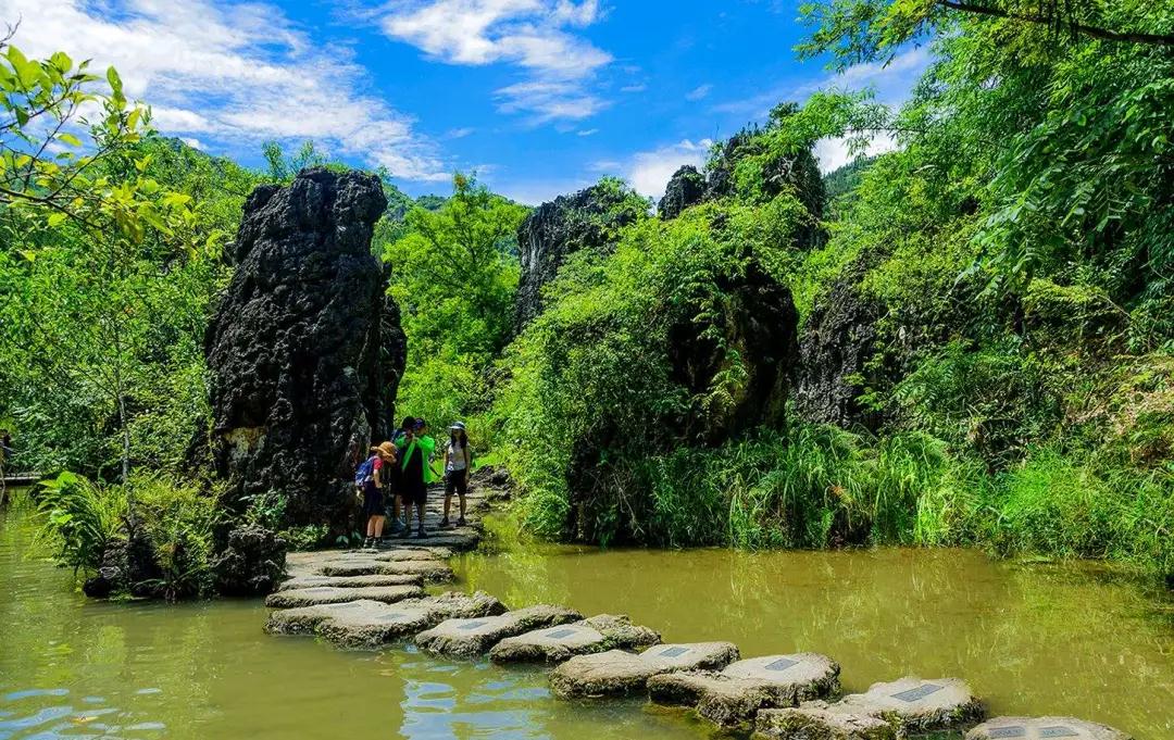 上午:早餐后乘車前往荔波。抵達后用中餐,后游覽世界自然遺產(chǎn)地,中國最美麗的地方之一【小七孔景區(qū)】(不含小七孔電瓶車40元/人,保險10元/人,必須消費敬請自理)在寬僅1公里、長12公里的狹長幽谷里,集洞、林、湖、瀑、石、水多種景觀于一體,玲瓏秀麗,有“超級盆景”的美譽。游覽景區(qū)名字由來地【小七孔古橋】。欣賞景區(qū)靈動多姿的各色瀑布:起迭著【68級跌水瀑布】,順贄而下,奔瀉而去;【拉雅瀑布】布精巧醉人,水珠飛濺;【臥龍?zhí)镀俨?/strong>】銀絲瀉地,潭水色彩斑斑斕絢麗;【翠谷瀑布】在群峰緊鎖中蒼翠欲滴。感受赤足濕身樂趣的【水上森林】,清澈的水流沖刷著青石,行走于其中,宛若身臨瓊瑤仙池;【鴛鴦湖泛舟】(不含鴛鴦湖游船30元/人,非必須消費項目,自愿消費)—尋找一份愛情;嫵媚而迷人的【響水河】更是貫穿了整個風景區(qū)。