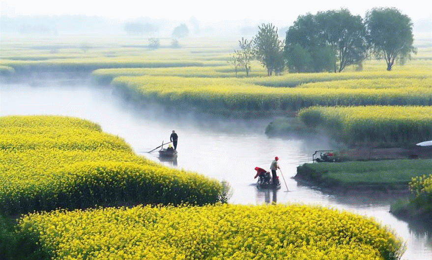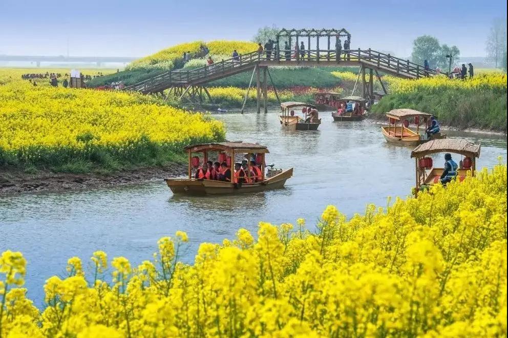 早餐后,出發(fā)前往【高郵湖上花海】位于高郵湖漫水公路北側(cè)的新民灘,依托新民灘良好的生態(tài)資源基礎(chǔ)和高郵湖水環(huán)境,主要以油菜花勝境、天然馬場(chǎng)、露營(yíng)基地、休閑運(yùn)動(dòng)為重點(diǎn)。2000多畝的油菜花競(jìng)相綻放,與高郵湖的湖灘濕地、鄉(xiāng)間公路交織在一起,從空中俯瞰,再現(xiàn)“水天一色、煙波浩渺”的壯美自然景觀,吸引游客徜徉花海,感受春天美麗風(fēng)光。金燦燦的油菜花與碧波湖水相互映襯,構(gòu)成一幅‘湖上花?!拿利惍嬀?,游客可以徜徉金色花海,欣賞千畝菜花、湖上帆船的秀美景色。水流舒緩,碧波澄澈,流金溢彩,花色醉人。游覽結(jié)束后返回溫馨家園。