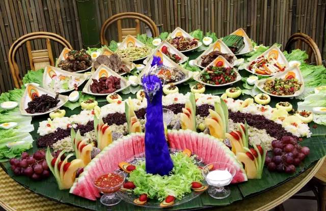 午餐享用較有特色的云南十大主題名宴之一西雙版納【孔雀宴】從原料選擇、烹飪制作,到造型擺盤(pán)、餐具搭配,每個(gè)細(xì)節(jié)都精巧細(xì)致,別出心裁。例如活靈活現(xiàn)的孔雀頭,形神兼具的孔雀尾,還有利用干冰營(yíng)造出的仙云輕霧,讓本就美麗的孔雀更添仙氣兒,吃貨朋友們稱(chēng)之為“瑤臺(tái)孔雀宴”。