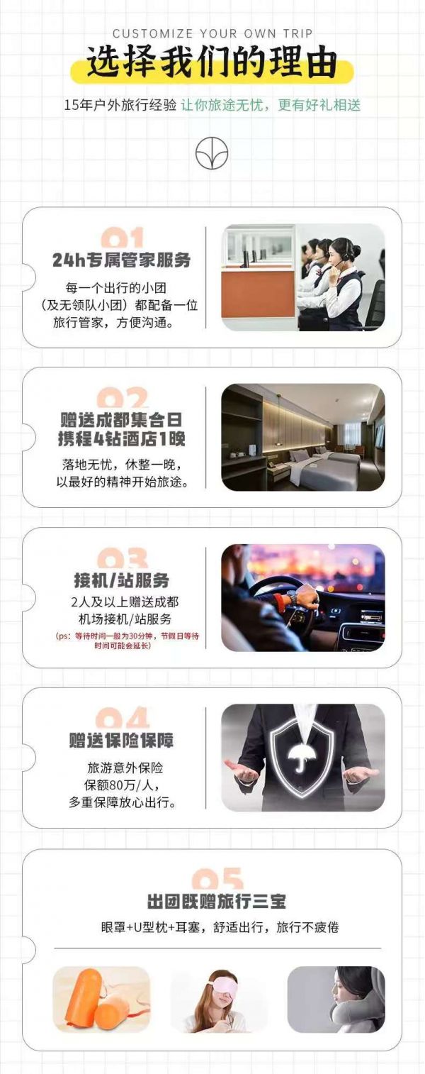 (1)受天氣、堵車等客觀因素影響,當(dāng)日回成都比較晚,請盡量不預(yù)訂當(dāng)天的返程機(jī)票或火車票,以免因?yàn)槎萝嚱o您帶來沒有必要的損失。