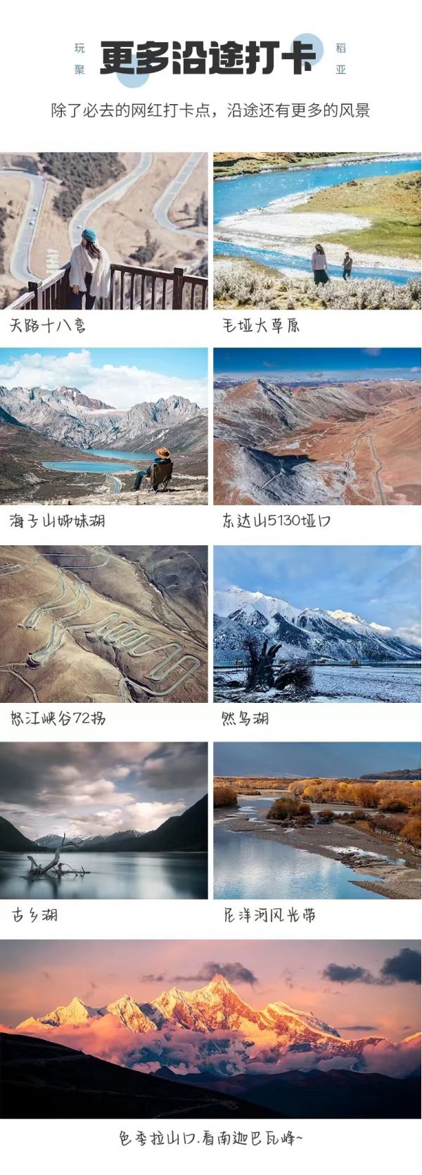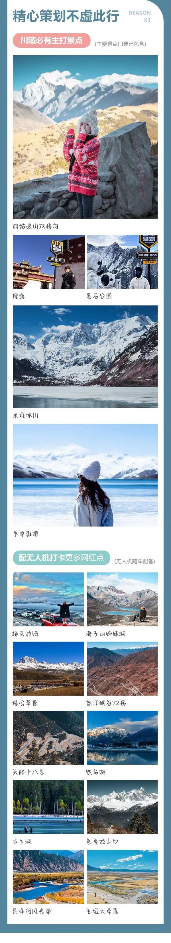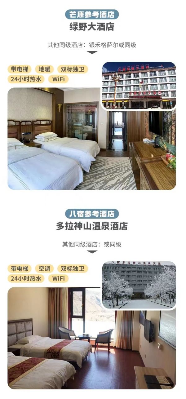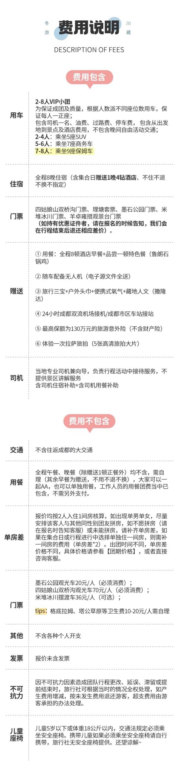 1.冬季11月-次年3月如因魚子西/格底拉姆封山無法前往,則將魚子西/格底拉姆景點(diǎn)換為八郎生都。