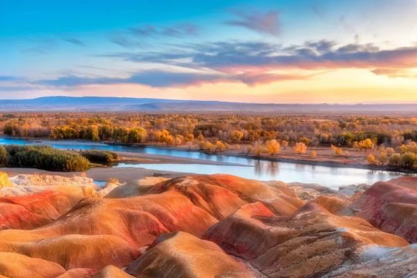在夕陽西下時(shí)候,前往【五彩灘】外圍游覽,這里是額爾齊斯河的一段特殊的河灘,南岸是蔥郁的樹木和草地,北岸則是寸草不生的土地,一河兩岸,各有洞天。這里的土丘擁有豐富的地貌色彩,被稱為上帝打翻的調(diào)色板,尤其是天氣晴好夕陽西下時(shí)分,進(jìn)入景區(qū)后看到余暉灑在河岸邊的丘陵,顏色瑰麗令人炫目。穿行在土地的溝壑之中,兩側(cè)的土壤或呈灰褐色,或呈金黃色,還可以登上觀景臺(tái),俯瞰整個(gè)景區(qū)帶給眼睛的色彩沖擊,舉起相機(jī)拍出你想要的大片。來到布爾津一定要去熱鬧的河堤夜市逛一逛,品嘗這里特產(chǎn)的烤魚,配上一杯香甜的格瓦斯,一掃當(dāng)日的旅途辛勞?!?