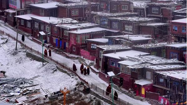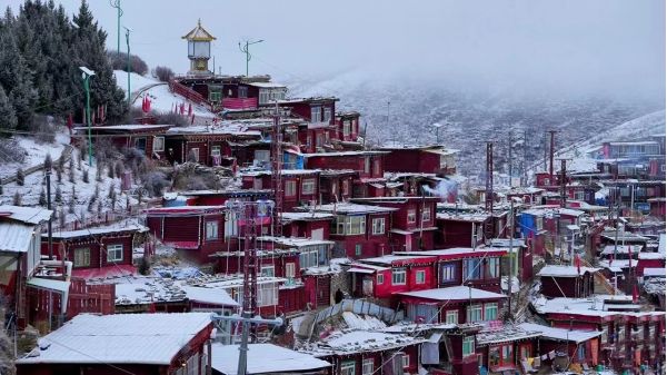 這里沒有嘈雜的人煙只有紅色的經(jīng)舍