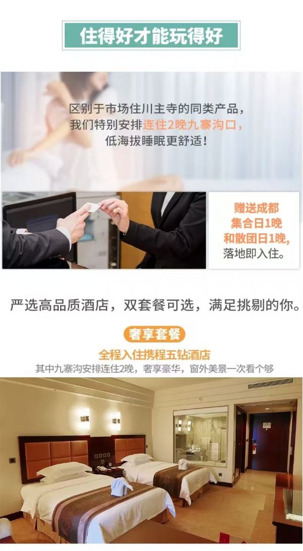 tips:成都集合日與散團日酒店為贈送酒店,酒店以實際安排為準均不換不退不指定,如要更改酒店產(chǎn)生的費用需要自行承擔。
