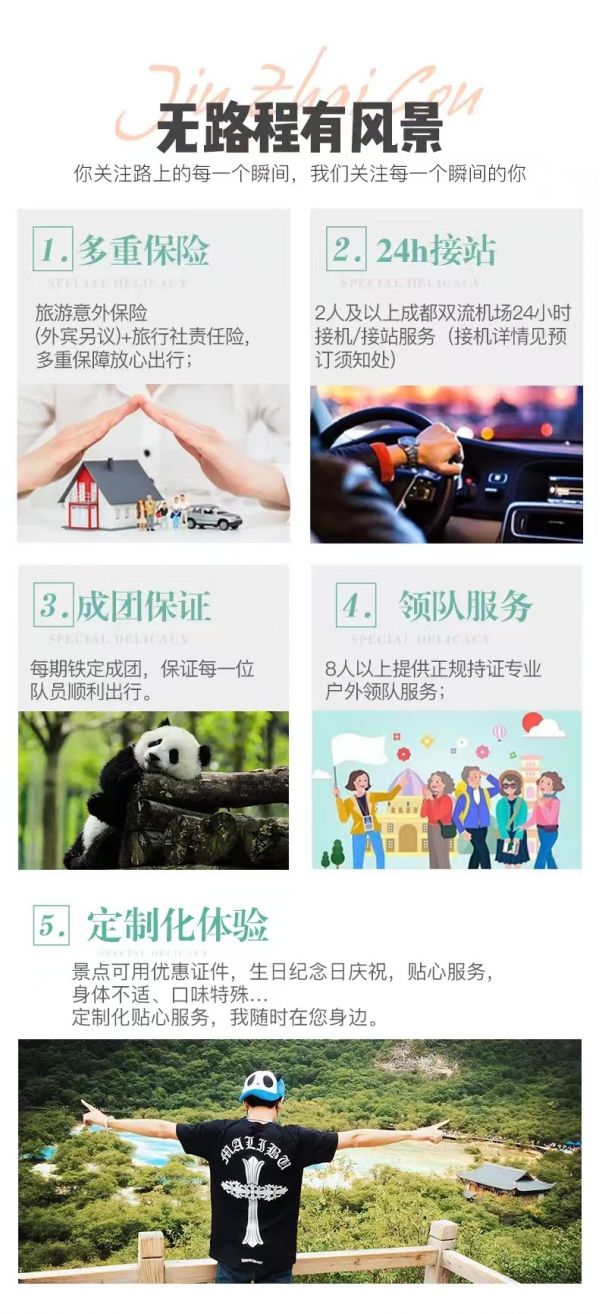 (2)九寨溝面積較大游客需求不一,因此主要以游客自助游形式游覽,如無領(lǐng)隊陪同望您諒解。游覽開始前領(lǐng)隊會與您約定好集合時間,請務(wù)必按時到達指定地點,避免耽誤大家接下來的行程;