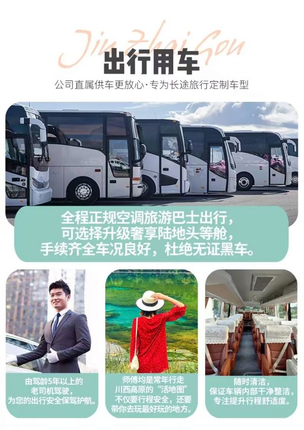 1、關(guān)于車輛交通:目前四川旅游市場8座以下車輛無法辦理旅游牌照,請游客知悉,以此理由提起的投訴我方拒不受理,望您諒解。