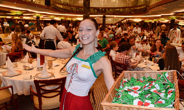 20、娛樂團隊全天為游客提供甲板上以及休閑室內(nèi)的活動。這些活動向所有人開放。在Costa郵輪上的夜晚是一個特殊的時刻,你會發(fā)現(xiàn)新的享受。您可以享受主休閑室內(nèi)的音樂表演,舞蹈以及特別的表演。你可以前往鋼琴酒吧享受溫和的音樂,或者去另外一個休閑室享受樂趣,游戲或者卡拉ok。找尋你最喜歡的喝酒的地點,或者在舞廳甚至可以是甲板上跳支舞。在夜總會整夜都有DJ服務(wù)。豐富的娛樂項目可以在《今天》查詢。