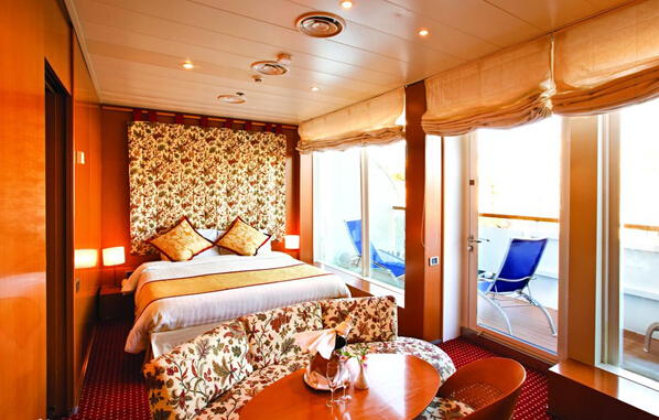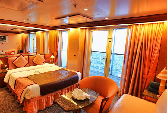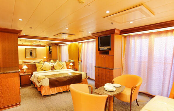 3、船上有一定數(shù)量的單人客艙,其價格扣除了一部分關(guān)稅。在某些船上有一定數(shù)量的雙人客艙,如支付差額,可用于單人。您在預(yù)定時,請核對可用性與價格。套房特惠除與所有客艙享有相同的服務(wù)和特色外,迷你套房和套房中的游客還享有如下特別優(yōu)惠:優(yōu)先登船-仆役服務(wù)-每天供應(yīng)新鮮水果-套房內(nèi)享用午餐和晚餐(應(yīng)要求)-極可意浴缸-浴衣和拖鞋-應(yīng)邀參加船長的高級雞尾酒會-可在點菜餐廳優(yōu)先預(yù)訂席位-可由仆役服務(wù)預(yù)約觀光活動(命運女神號與維多利亞號上的迷你套房僅有淋?。?