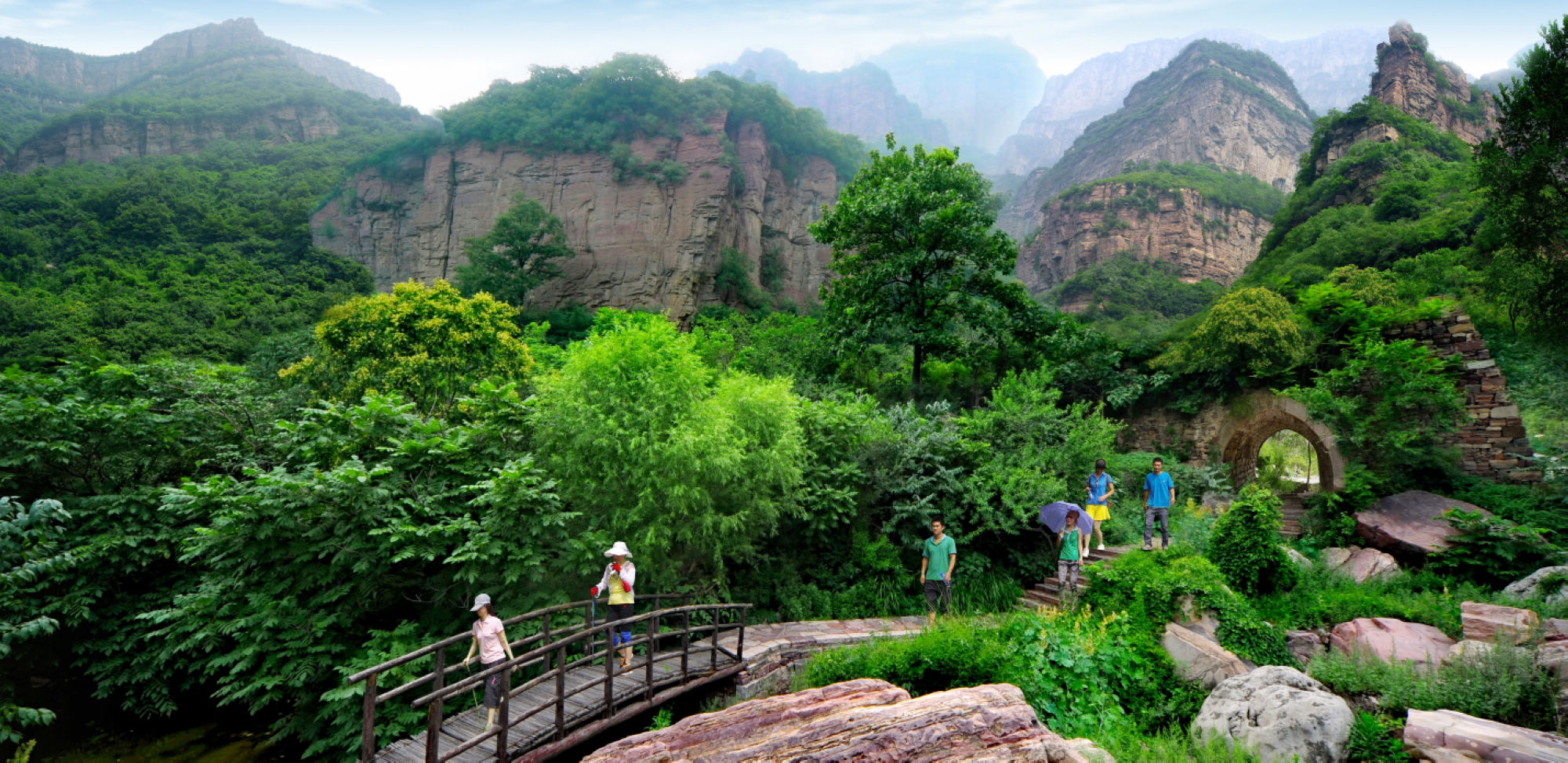 桃源谷也叫磊瀑溝。這是一道約三公里長的風(fēng)景線,這道山谷兩旁山峰壁立,林木蒼翠,溪流如玉,綠潭如絨,十步一瀑,五步一潭,令你目不暇接。