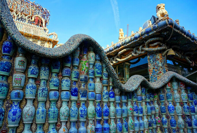瓷房子(赤峰道):這是一座用數(shù)萬件古董瓷片裝修而成的法式洋樓,它的前身是歷經(jīng)百年的法式老洋樓,為房主張連志親自設(shè)計(jì)。