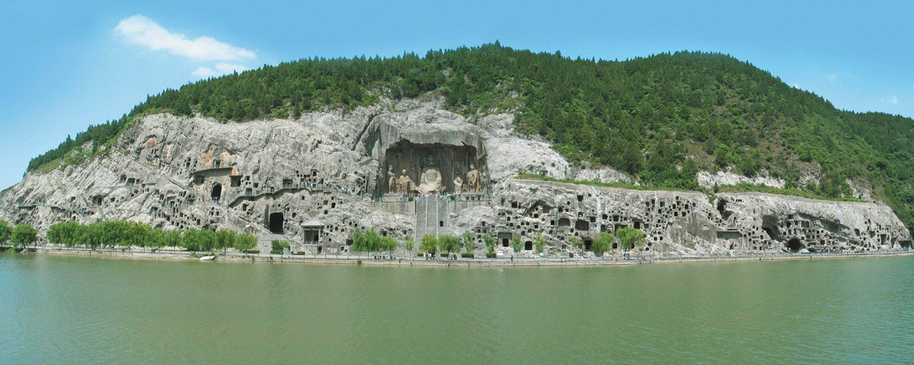 龍門石窟位于河南省洛陽市洛龍區(qū)伊河兩岸的龍門山與香山上,開鑿于北魏孝文帝年間,之后歷經(jīng)東魏、西魏、北齊、隋、唐、五代、宋等朝代連續(xù)大規(guī)模營造達(dá)400余年之久,南北長達(dá)1公里,今存有窟龕2345個,造像10萬余尊,碑刻題記2800余品。其中“龍門二十品”是書法魏碑精華,褚遂良所書的“伊闕佛龕之碑”則是初唐楷書藝術(shù)的典范。