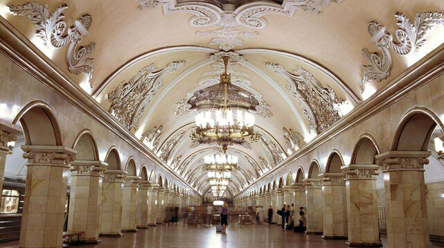 圣彼得堡地鐵站:興建比莫斯科晚很多,是世界上最深的地鐵,最深處達(dá)100米,站在電梯上往下看,長長的人龍不斷潛入望不見的地層下,有些科幻感。(其中1號(hào)紅線有最漂亮的車站)。