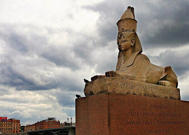 獅身人面像 :(外觀)這一對(duì)帶有獅身的阿門霍特布三世的法老面像,是公元前1455年--1419年雕刻的,1832年從尼羅河運(yùn)到圣彼得堡。
