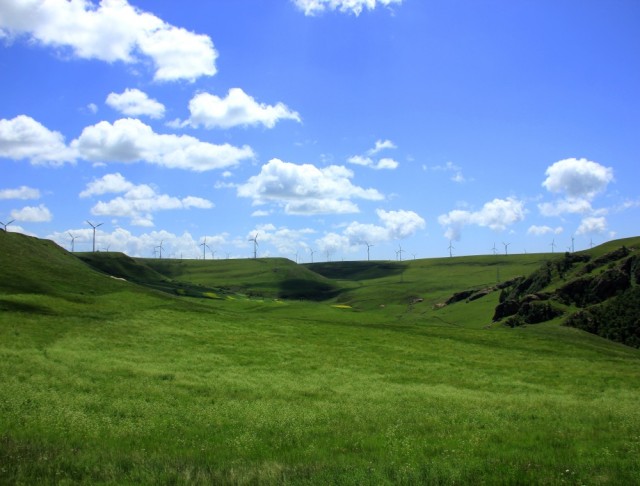 世界上保持完好的天然高山草甸草原,亞洲最大的風力發(fā)電廠,草質(zhì)精良,牛羊成群,天然氧吧;也是典型的鮮花草甸草原,平均海拔2100多米,是世界少有且保持完好的天然草甸型草場,并確認十八種草種為珍稀草種,被譽為“仙境草原”。