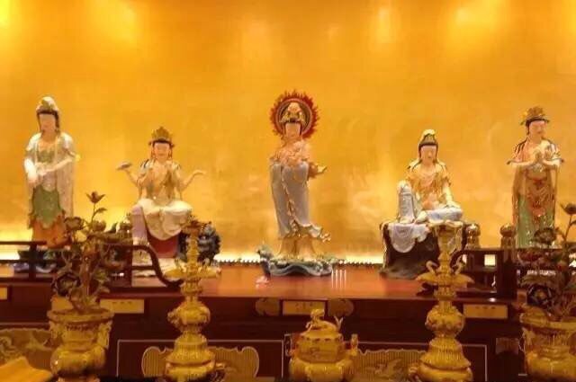 第四層為圓通寶殿。觀音菩薩的事跡在此得以呈現(xiàn), 整層按《觀音60靈簽》來供奉60尊法相莊嚴(yán)、慈悲之觀音菩薩,我們用傳統(tǒng)木雕及彩繪貼金工藝來制作,菩薩神態(tài)寧靜祥和,呈現(xiàn)出一片清凈無比,至真至善至美的觀音菩薩的凈土。