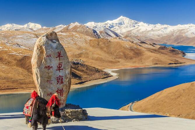 早餐后出發(fā),過國家級(jí)風(fēng)景名勝區(qū)——雅礱風(fēng)景名勝區(qū),觀雅魯藏布江最寬處——海闊天空觀景臺(tái)觀河景、沙洲。翻越海拔4990米的岡巴拉神山,就抵達(dá)是世界上最高的淡水湖、有天上圣湖之美譽(yù)的【羊卓雍措】(湖面海拔4441米。藏語為“天鵝湖”),是西藏三大圣湖之一的淡水湖,湖水如羊脂般清澈。湖西是后藏地區(qū)最重要的神山——寧金抗桑峰。沿著羊湖邊前行,湛藍(lán)的湖水遠(yuǎn)方的雪山連為一體,加上兩岸各色的山脈、極具特色的藏民族村落、遍地的牛羊,一路走來,心曠神怡。參觀人類最容易接近的冰川——【卡諾拉冰川】;在陽光的照耀下熠熠生輝、驚為天上之湖的曼拉水庫,路過江孜英雄城,最后抵達(dá)山東對(duì)口援建的后藏重鎮(zhèn)——日喀則。