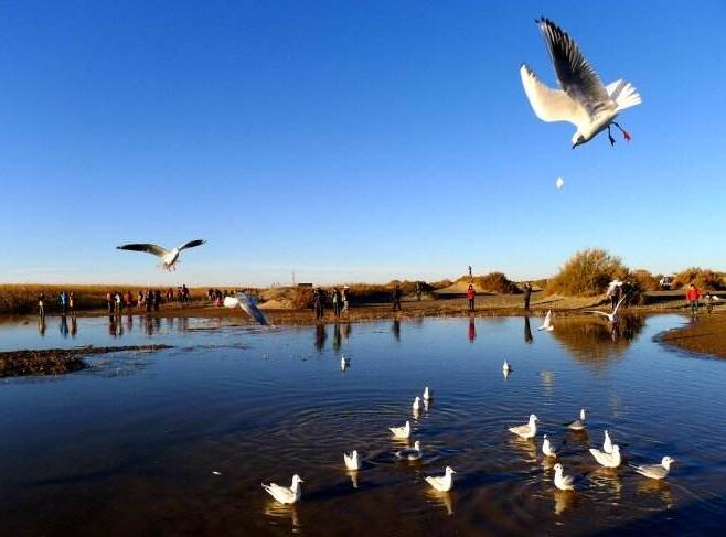 早乘車赴“落霞與孤鶩齊飛,秋水共長天一色”的——【居延海】(車程1小時,約50公里,游覽時間1.5小時),居延是匈奴語,《水經注》中將其譯為弱水流沙,藍天、碧水、野鳥、蘆葦蕩讓人感慨大自然的力量,無法想象在茫茫戈壁沙漠中的鑲嵌的綠寶石擁有這樣的震撼!可以帶點面包做鳥食,觀海天一色,海鳥與美景相隨!游覽后乘車赴——【弱水·金沙灣】(車程80分鐘,約70公里,游覽時間2.5小時)這里是整個額濟納旗39萬畝胡楊林中胡楊林最全玩法的經典圣地,,弱水河畔胡楊、沙漠胡楊林原生態(tài)的野性之美,百媚胡楊千古情,弱水三千只飲一瓢的忠貞愛情保佑著所有到過這方土地的人們。這里的五湖、四島、九重林、黑天鵝、駝群、馬群、羊群、胡楊人家形成了一條亮麗的風景彩虹,專場游覽,沒有擁擠的人頭,是純粹感受胡楊之美的最佳圣地。在這里您可以去純粹的胡楊人家喝茶聊天,可以騎著駱駝游蕩在沙漠胡楊林中感受一下絲綢之路上的駝客,也可以坐上越野車來上一次沙漠探險做一回越野英雄。后乘車赴后乘車赴前往敖倫布拉格鎮(zhèn)(原名六團),抵達后宿敖倫布拉格小鎮(zhèn)。