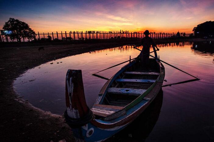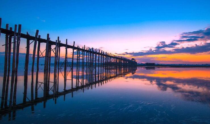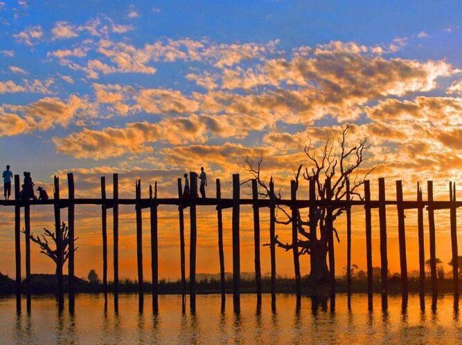 飯店內(nèi)早餐后,乘車前往曼德勒市西南郊的【烏本橋】,此橋全長(zhǎng)2千余米,全部由柚木建成,又稱“情人橋”,至今已有2百多年的歷史;橋上當(dāng)?shù)匦腥撕图t衣僧侶悠閑往來,小販攤商兜售特產(chǎn),奶茶館掩映在古樹如傘的巨大樹冠之下,平和中又充滿生活的情趣。參觀在其面前前往橫跨大河的“情人橋”,全橋總長(zhǎng)1200公尺,全部由柚木建成,又稱柚木橋。參觀緬甸特產(chǎn)【翡翠玉】。乘機(jī)前往黑河。抵達(dá)后,乘車前往艷麗湖。抵達(dá)湖邊的娘惹鎮(zhèn)后,換乘當(dāng)?shù)靥厣男〈?,前往建于水邊的木屋酒店。入住后,用晚餐,并欣賞當(dāng)?shù)亍?strong>民族歌舞表演】。