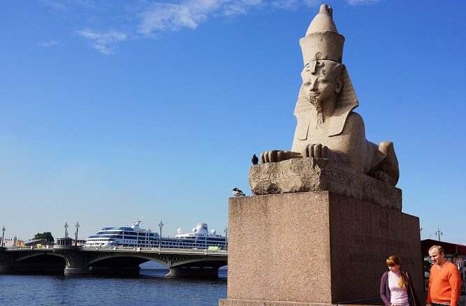 【獅身人面像雕塑】(參觀(guān)約10分鐘)這對(duì)獅身人面像是15世紀(jì)從埃及出土的文物,由俄羅斯政府購(gòu)買(mǎi)并運(yùn)回圣彼得堡擺放在了涅瓦河畔。