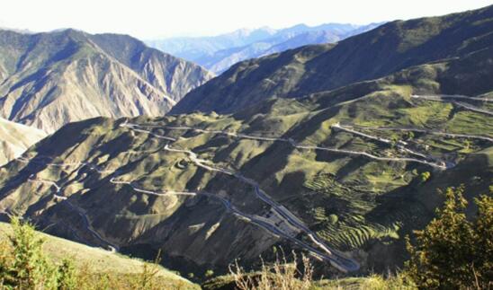 72道拐】,車在公路上以之字形盤旋曲折前進(jìn),進(jìn)入川藏公路拐彎最多的路段。下行到