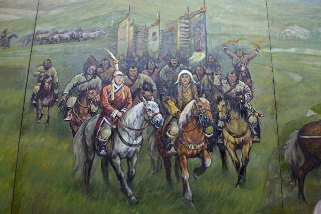 成吉思汗一生經(jīng)歷60余場(chǎng)戰(zhàn)役,用他的勇敢、智慧、謨略,把四分五裂的草原部落統(tǒng)一在一起,變成了一個(gè)強(qiáng)大的蒙古民族。西到現(xiàn)在的中東,南到現(xiàn)在的越南老撾,是當(dāng)時(shí)世界上疆域最龐大、最強(qiáng)大的國(guó)家。無(wú)論在哪個(gè)年代,無(wú)論年幼老少,在內(nèi)蒙古人們的心中,他永遠(yuǎn)是最驕傲的民族英雄。