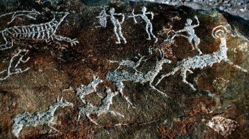 巖畫(huà)是一種石刻文化,人類(lèi)祖先以石器作為工具,用粗獷、古樸、自然的方法--石刻,來(lái)描繪、記錄他們的生產(chǎn)方式和生活內(nèi)容,它是人類(lèi)社會(huì)的早期文化現(xiàn)象,賀蘭山巖畫(huà)是史前文明的搖籃。