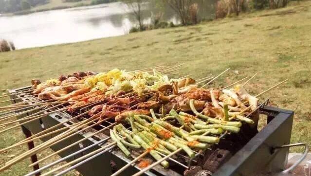 晚餐在景區(qū)用戶外燒烤,戶外燒烤呼朋喚友、溝通感情和享受大自然,自己動(dòng)手在燒烤肉類或魚(yú)類前,最好先用調(diào)味料腌漬,否則即使多加燒烤醬,味道也只是停留在表面,本身的香氣就已經(jīng)很誘人了,灑上椒鹽孜然,味道就更美了。