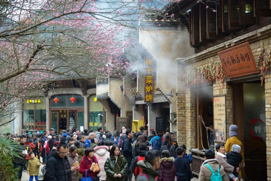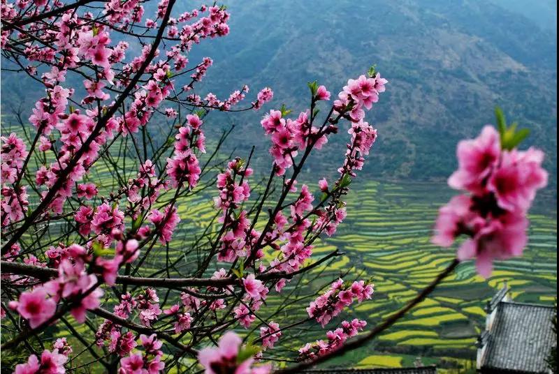 在這油菜花即將盛開的時節(jié),篁嶺的梅花、山茶花早先一步開放,天街道路兩旁,已是粉紅一片。