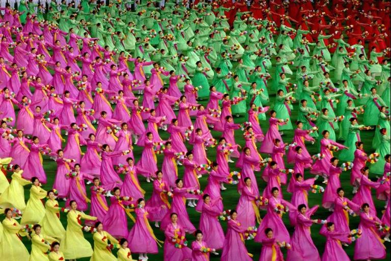 另一種普遍認知,是集體主義美學的代表“阿里郎”表演。它曾憑借10萬人的參演規(guī)模被載入吉尼斯世界紀錄。