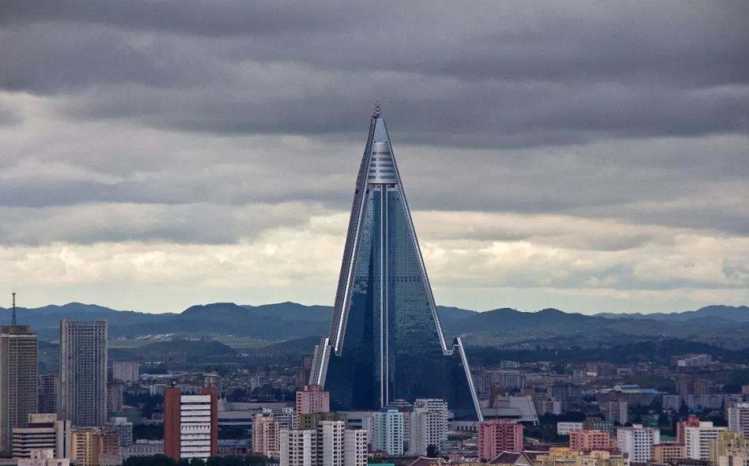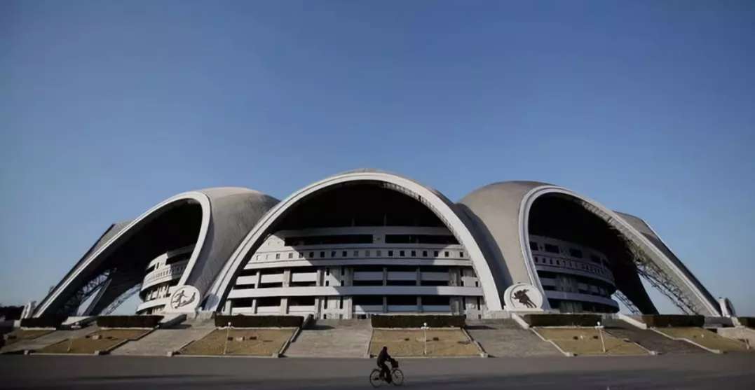 但即使是這座空前龐大的體育館,在獨具特色的朝鮮建筑群里,也完全不是最受矚目的那一個。