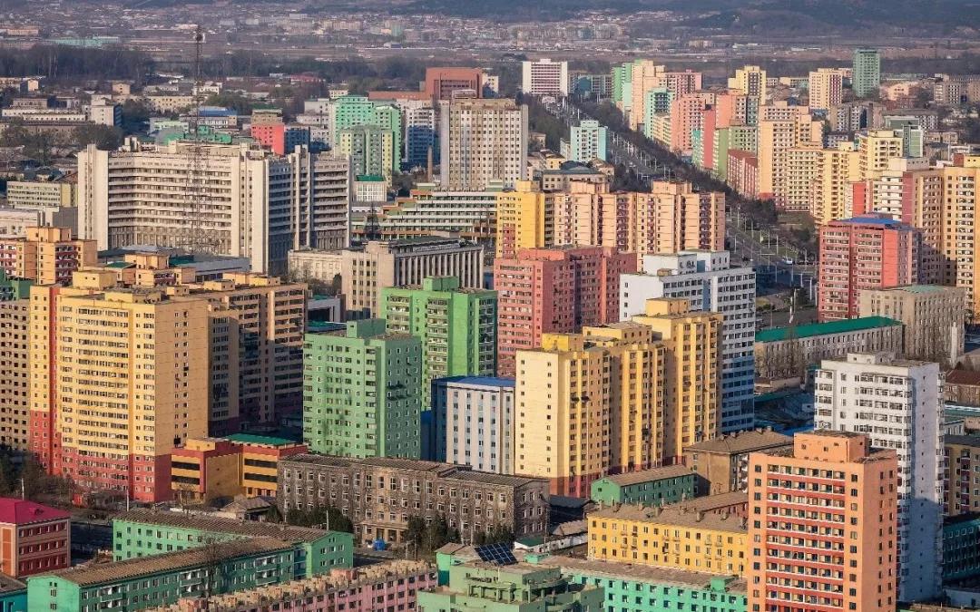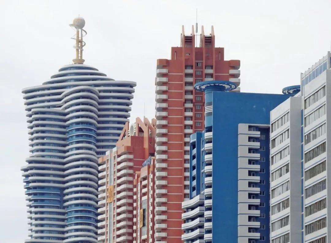 《衛(wèi)報》的建筑設計評論家Oliver Wainwright曾到訪朝鮮。早已習慣霧都灰蒙蒙色調的他,詫異于宛如蠟筆畫般的平壤建筑。即使是四四方方、不茍言笑的蘇式高層建筑,在合適的色彩搭配下,就有了幾分阿里郎集體式美學的模樣。