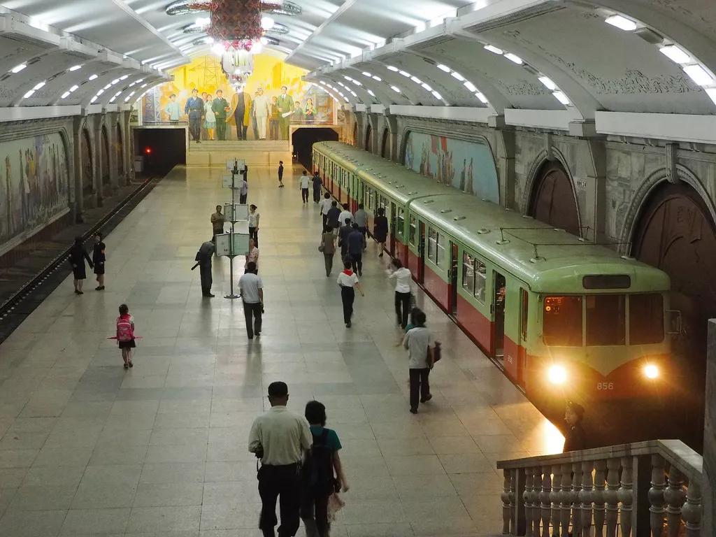 仿照莫斯科風格建成的平壤地鐵站,宣傳畫也是必不可少的裝飾