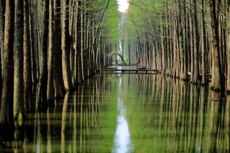 午餐后,下午前往【水上森林公園】,拍攝斜陽下的奇妙森林,進入景區(qū)你也可以泛舟于縱橫交錯的河流之上,或置身于高大的水杉林之中,這兩者都可以讓你欣賞到“樹在水中長,鳥在身邊飛”的生態(tài)美景。