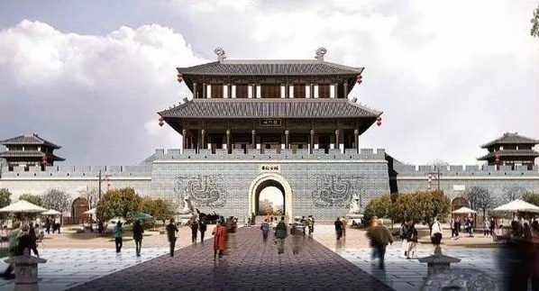 【廟會廣場】是展示宗教文化和地方市井文化的場所。廣場上建有春秋圣殿、城隍廟、古戲臺。春秋圣殿展示發(fā)源于春秋時期的諸子百家思想文化;城隍廟是人們求財(cái)保平安的場所;古戲臺是演出地方戲曲和地方歌舞的場所。