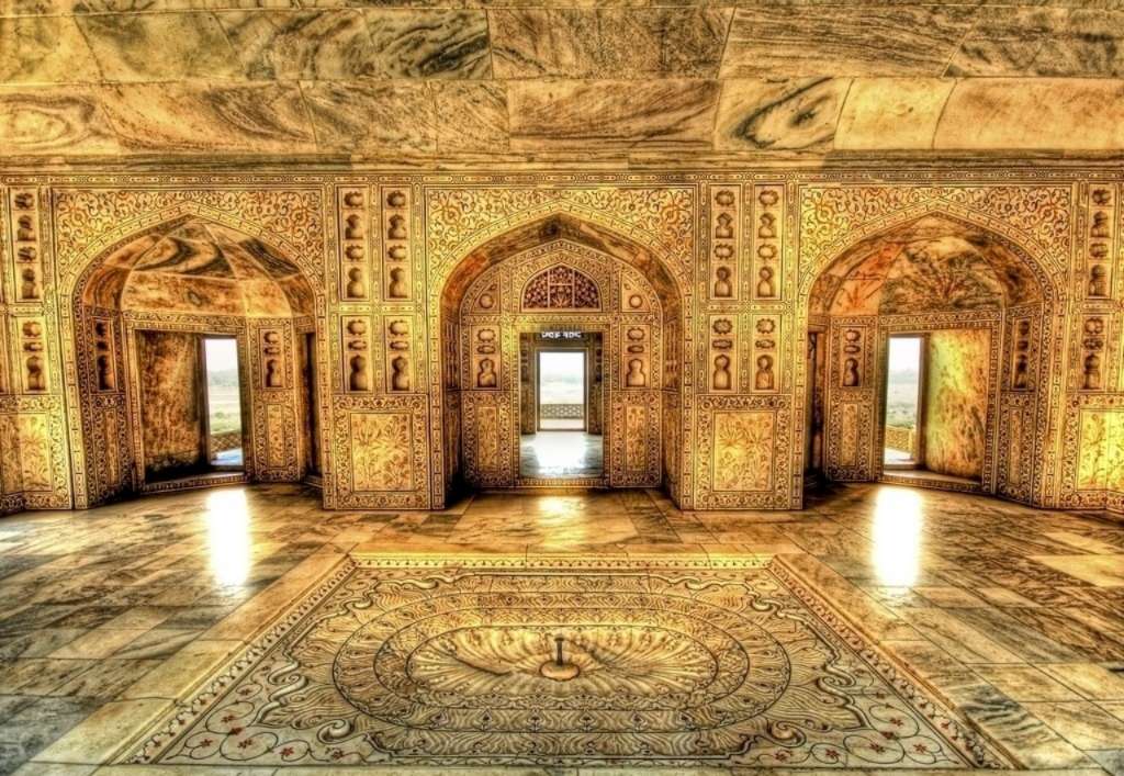 午餐后驅(qū)車前往阿格拉堡,它距泰姬陵約 1.5 公里,全部采用紅砂巖建造而成,故又稱紅堡,與首都德里的紅堡齊名。這座方圓 38 萬平方米的宮堡,外形非常雄偉壯觀,城內(nèi)的宮殿,雖經(jīng)歷漫長的歲月,多已失修,但畫梁和墻壁上精巧的雕刻與設(shè)計(jì),仍隱約保存著昔日富麗堂皇的風(fēng)貌,于 1983 年被列入世界遺產(chǎn)名錄,夜宿阿格拉。