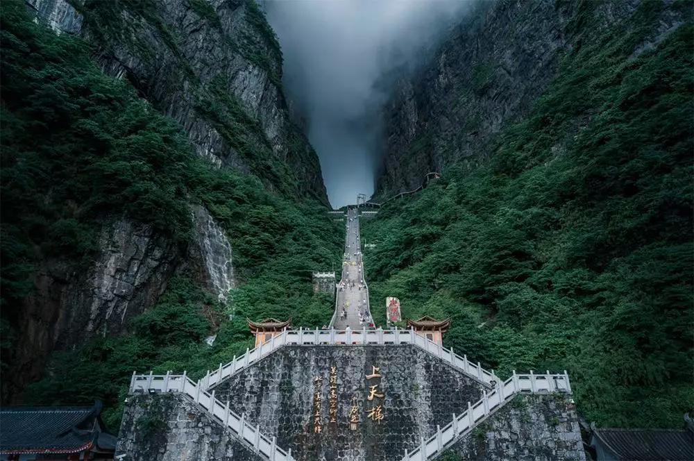 天門山,位于湖南省張家界市,古稱云夢(mèng)山、嵩梁山,因自然奇觀天門洞而得名。天門洞南北對(duì)開于千尋素壁上,氣勢(shì)磅礴,巍峨高絕。