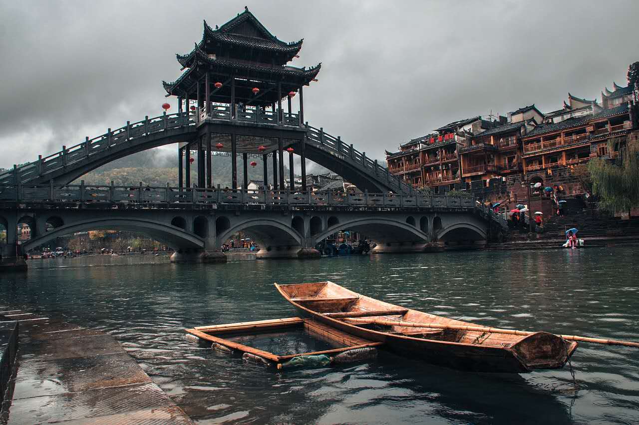 沱江,古城鳳凰的母親河,依城墻緩緩流淌,哺育著世世代代的古城兒女。坐上烏篷船,聽著艄公的號(hào)子,看著兩岸已有百年歷史的土家吊腳樓,別有一番韻味。順?biāo)拢┻^(guò)虹橋,一幅江南水鄉(xiāng)的畫卷便展現(xiàn)于眼前,遠(yuǎn)離塵世的感覺(jué)悠然而生。