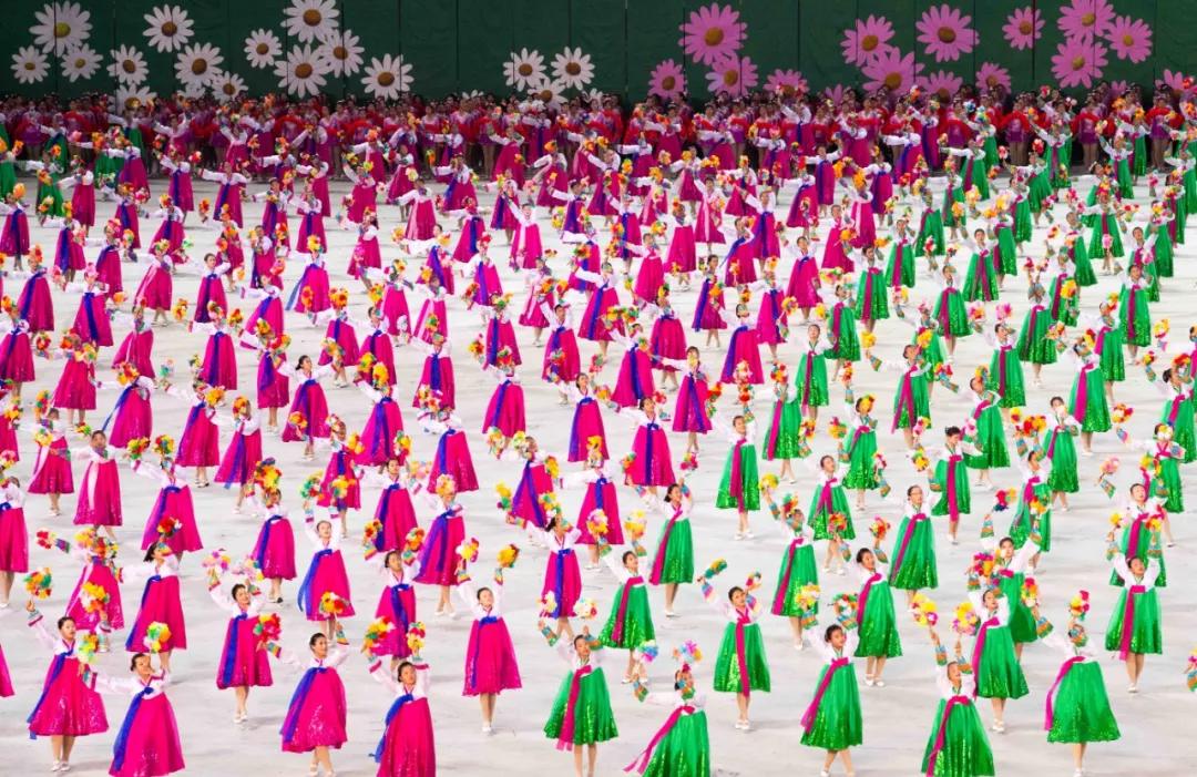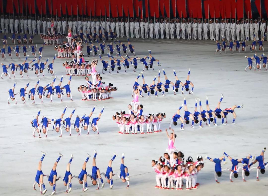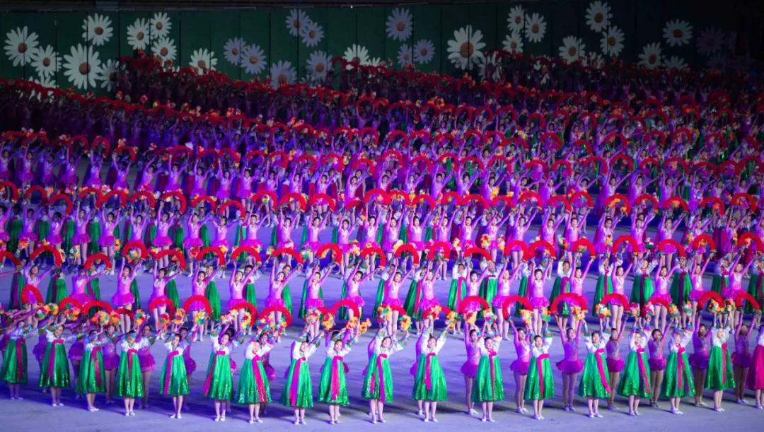 平壤大同江畔,綾羅島“五一”體育場是團體操的主要舞臺。演出以朝鮮民族獨特的“歌舞之美”、富有活力的團體操、嘆為觀止的雜技表演,展現(xiàn)出朝鮮革命與戰(zhàn)爭、政治和軍隊建設(shè)、民生與經(jīng)濟發(fā)展以及對外交往的宏偉畫卷。