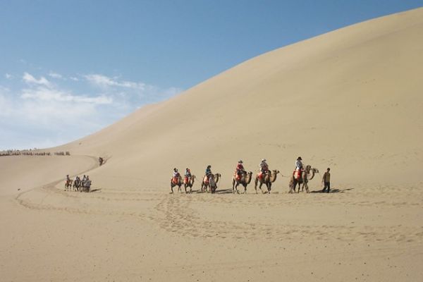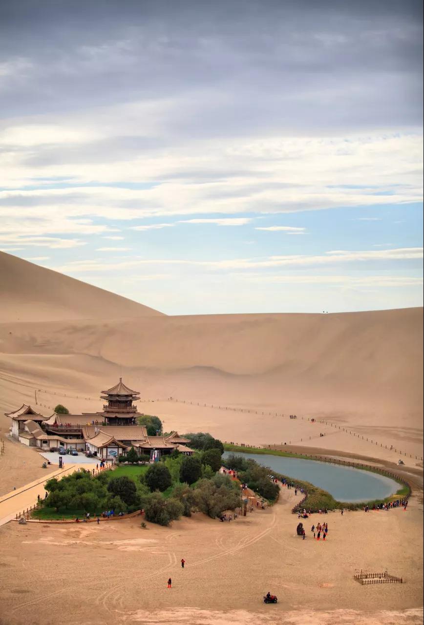 它有天下沙漠第一泉:月牙泉。古往今來以“山泉共處,沙水共生”的奇妙景觀著稱于世,被譽為“塞外風光之一絕”。