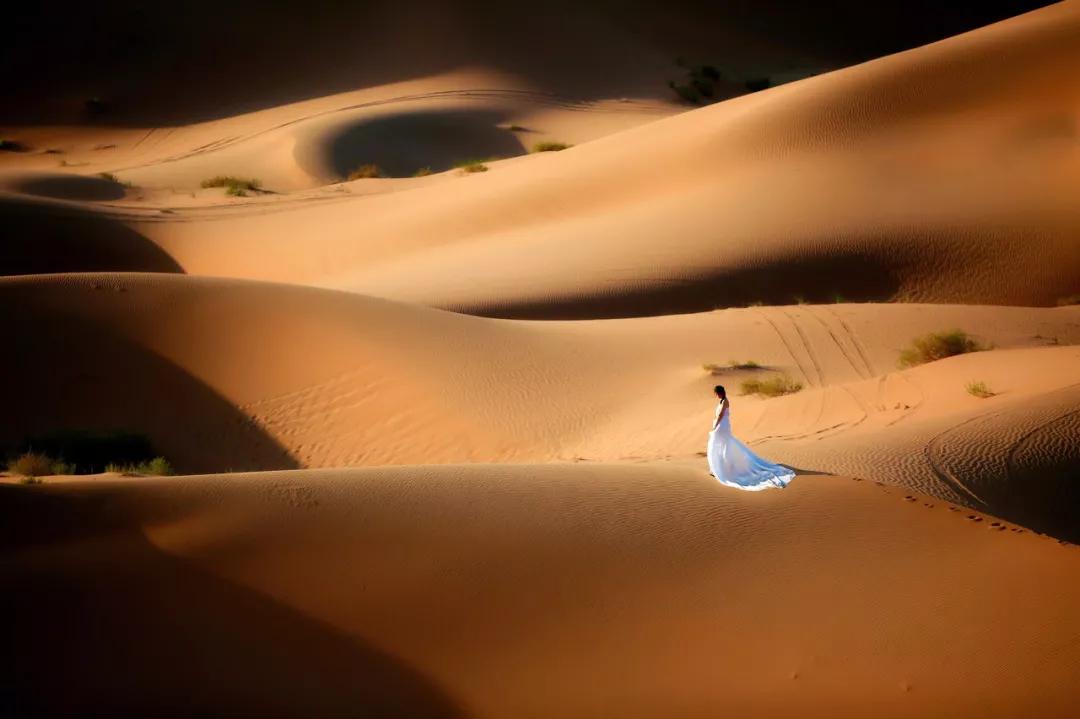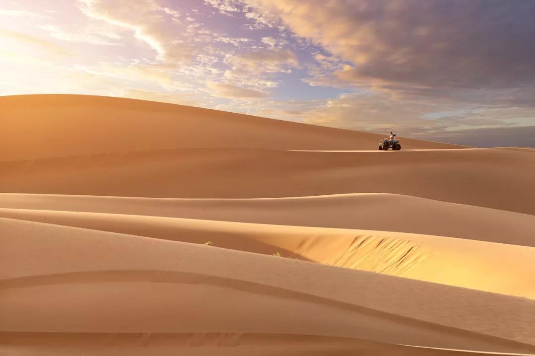 陽光灑下,沙漠變成金黃,與落日相依相伴,那一刻遙望遠方,覺得自己是如此的渺小,大自然的震撼,是發(fā)自內(nèi)心的贊嘆。