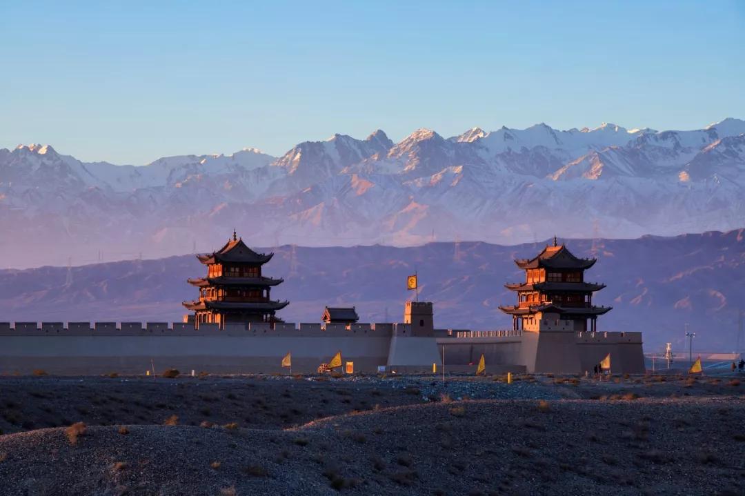城關(guān)兩側(cè)的城墻橫穿沙漠戈壁,北連黑山懸壁長城,南接天下第一墩,是明長城最西端的關(guān)口,歷史上曾被稱為河西咽喉,因地勢險要,建筑雄偉,有連陲鎖鑰之稱。