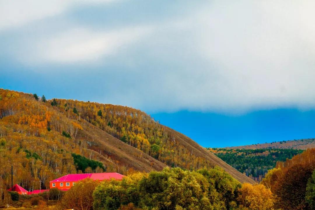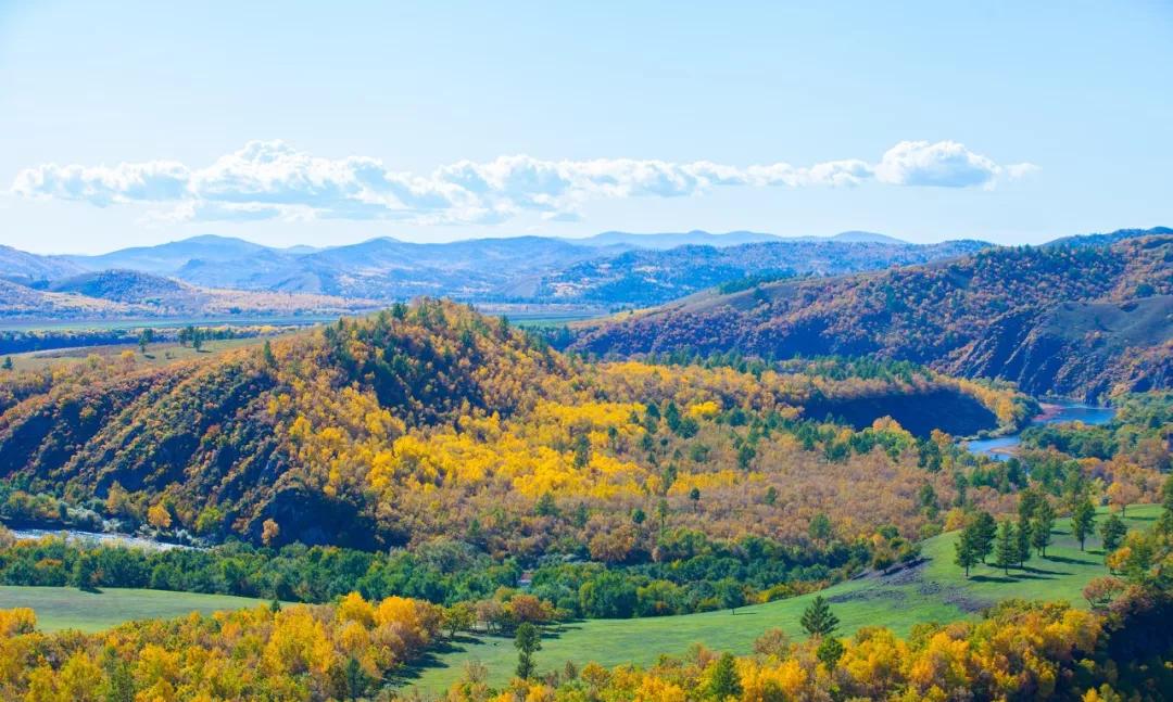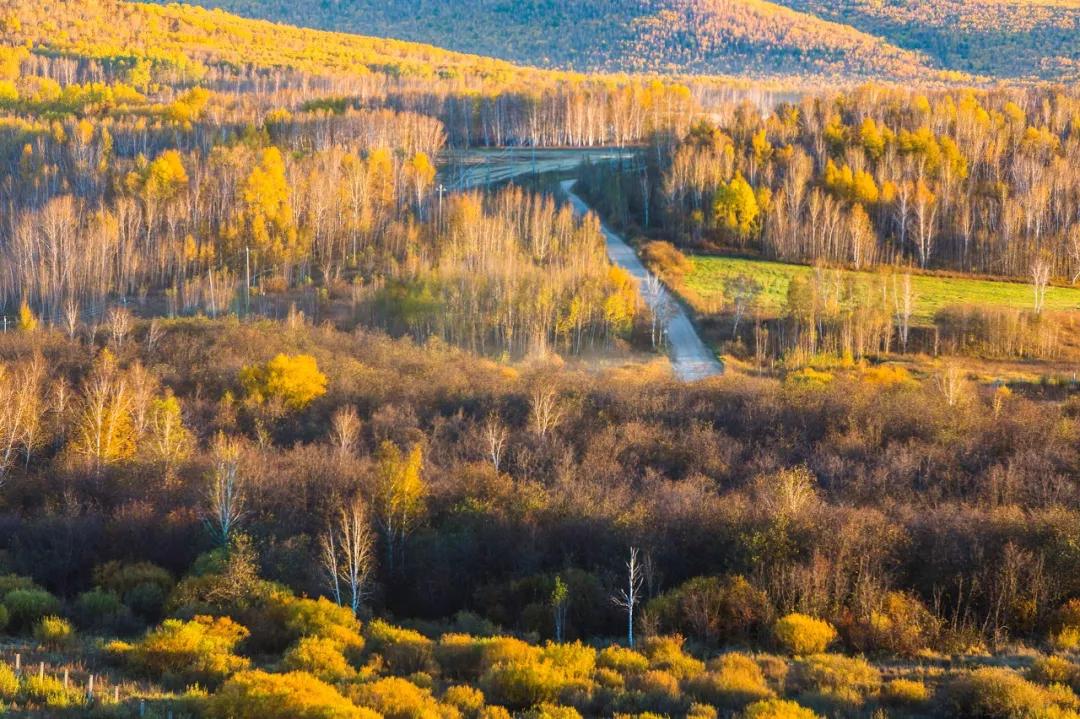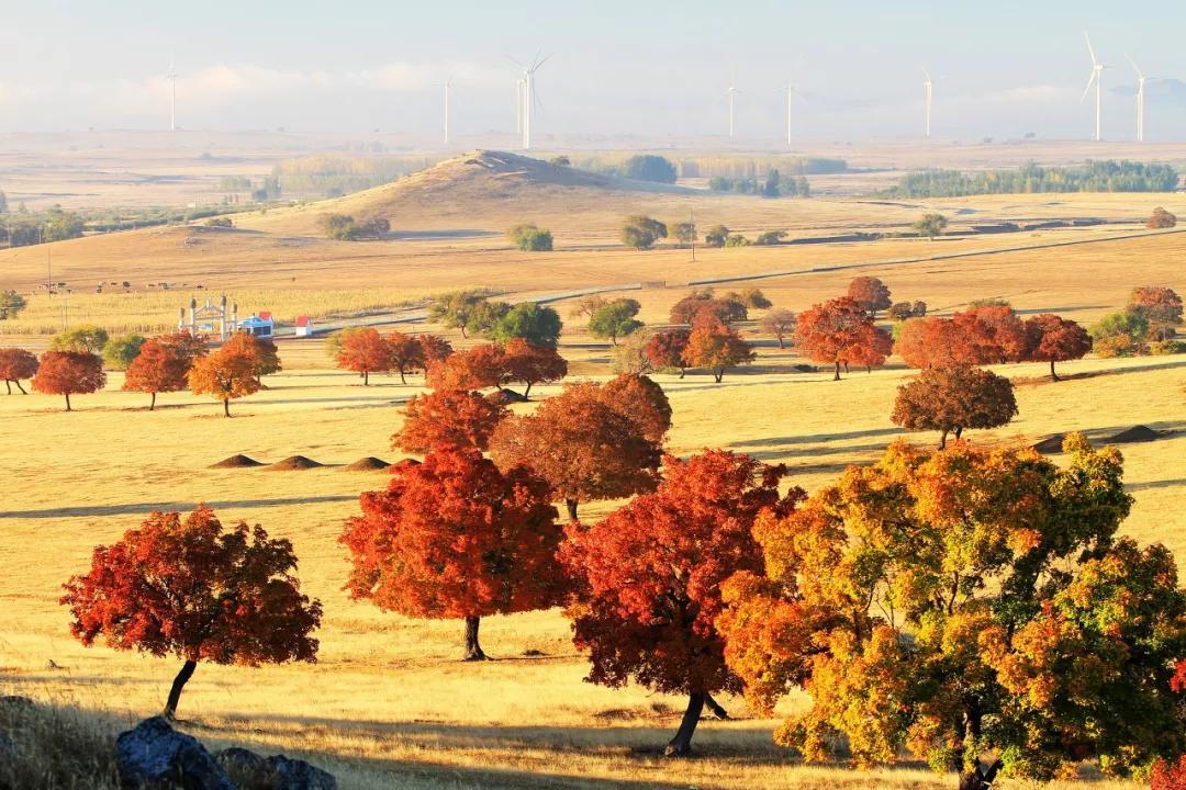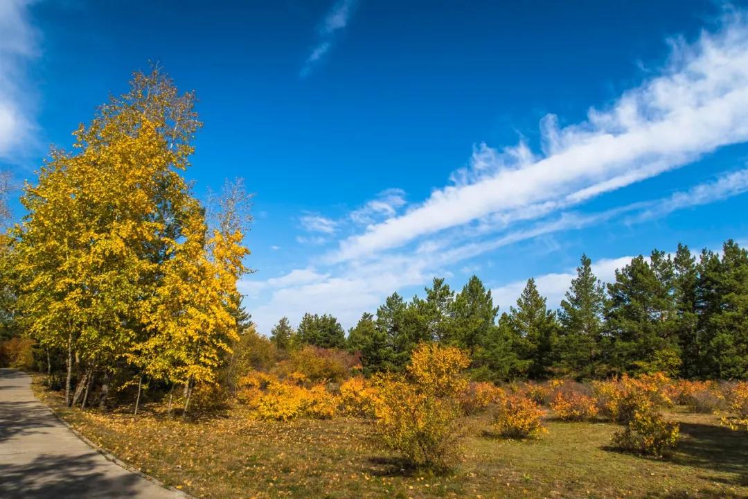 草原上點(diǎn)綴著金黃色的白樺林