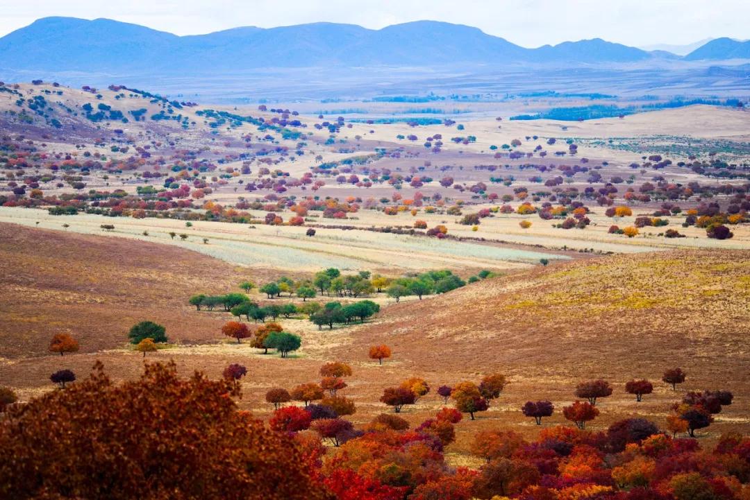 有紅黃不一的大片楓林