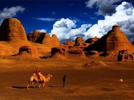 將軍戈壁是一個十分神奇而又迷人的地方,它獨特的地理環(huán)境孕育了獨具特色的自然景觀。這里的天空藍(lán)得讓你心醉神怡,這里的空氣新鮮得讓你不忍呼吸。那如烈焰騰空的是火燒山;那如紅氈鋪地的是紅柳的火陣;那綠意如春的是梭梭林。更讓你賞心悅目的是如夢如幻的海市蜃樓,那簡直就是一派仙境。遠(yuǎn)遠(yuǎn)望去,一泓春水,微波蕩漾,沙丘小樹點綴其間,幻化成亭臺樓閣,虛無飄渺,偶見身影閃動,如閑云野鶴,好不誘人。另外,亞洲最大的硅化木群,轟動全國的恐龍溝,被稱為化石之庫的石錢灘都在這里,和魔鬼城并稱將軍戈壁“四大奇跡”。版權(quán)所有山東聊城聊之旅國際旅行社有限公司,轉(zhuǎn)載必究!那個“城樓”的神奇還在于它隨時間的不同而變幻。當(dāng)旭日東升,從遠(yuǎn)處望去,“城樓”就象一對披著晨光的武士,忠實地守衛(wèi)著城堡的安寧;當(dāng)黃昏初上,明月當(dāng)空,那個高一些的就像個戴斗笠的老爺爺講述一個古老而有趣的故事??粗且荒话蚕硖靷惖男腋G閼B(tài),你無論如何也不會把它和魔鬼二字連系在一起。 只有在大風(fēng)之夜,你才會真正領(lǐng)略到它魔鬼的一面。這里的風(fēng)往往來的非常突然,有時明月當(dāng)空,風(fēng)清月麗,就說不定就會狂風(fēng)大作,飛沙走石。這時你就會聽到整個魔鬼城一片鬼哭狼嚎,有的聲如洪鐘。若惱若怒;有的細(xì)如婦泣,悲悲凄凄;還有的尖聲怪叫,讓人毛骨悚然。當(dāng)你孤身大漠,置身風(fēng)高月黑之夜,聽到這些令人心驚心膽戰(zhàn)的聲音,你絕對會有一種身置魔域的感覺。然而,當(dāng)?shù)诙煨袢諙|升,再看晨光下的魔鬼城,竟是那么溫順,那么安靜,大風(fēng)之夜的恐懼就像一場夢,你會感到一種從未有過的新奇和刺激。