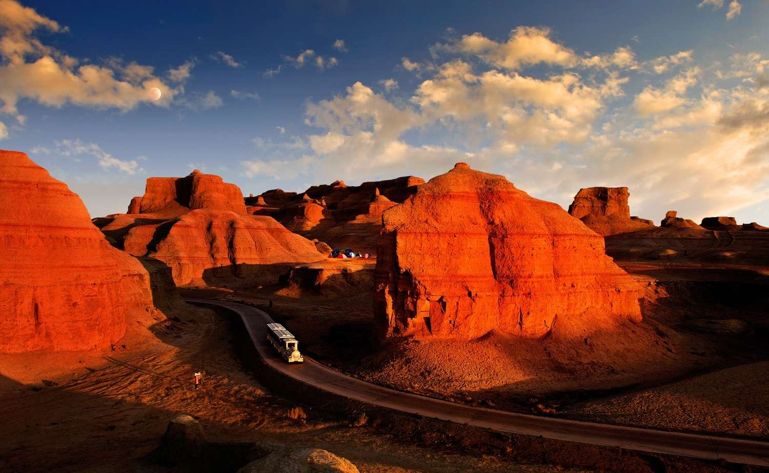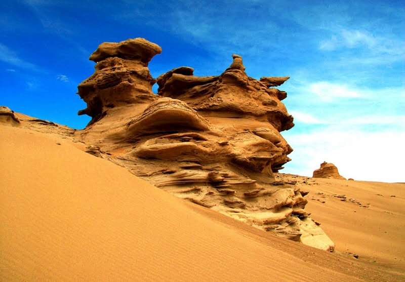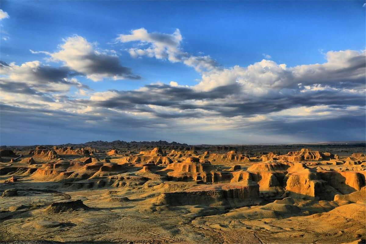 1.2萬年以來的全新世,在洪流和強(qiáng)風(fēng)的作用下原來平坦的盆地被慢慢沖刷剝蝕。風(fēng)和流水可以帶走疏松的沙土層,對堅硬的泥巖層和石膏膠結(jié)層卻作用有限。版權(quán)所有山東聊城聊之旅國際旅行社有限公司,轉(zhuǎn)載必究!不過致密的泥巖層也并非堅不可摧,荒漠區(qū)變化劇烈的溫差產(chǎn)生的脹縮效應(yīng)導(dǎo)致泥巖層最終發(fā)生崩裂,暴露出來的沙土層被風(fēng)和流水帶走,演變?yōu)榘疾蹱?;依然有泥巖層覆蓋的部分相對穩(wěn)固,形成或大或小的長條形土墩,這種奇特的地貌形態(tài)逐漸凸現(xiàn)出來。