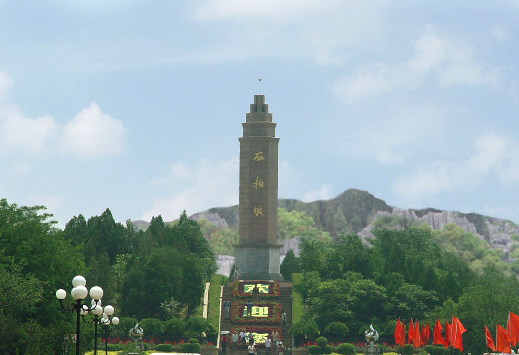 進(jìn)入西柏坡紀(jì)念館轄區(qū),首先看到的是巨臂托起太陽(yáng)的大門(mén)景,它告訴我們新中國(guó)從這里走來(lái);位于停車(chē)場(chǎng)西側(cè)的影像資料館,建筑面積3,300多平方米,集攝影、資料、娛樂(lè)于一體;氣勢(shì)宏偉的西柏坡紀(jì)念碑矗立在蒼松翠柏之中,碑名“西柏坡”系鄧小平手跡;碑上鐫刻著江澤民1991年9月21日參觀西柏坡時(shí)的題詞:“牢記兩個(gè)務(wù)必,建設(shè)有中國(guó)特色的社會(huì)主義。”碑座周?chē)鷮Ⅻh中央來(lái)到西柏坡、全國(guó)土地會(huì)議、三大戰(zhàn)役、七屆二中全會(huì)和赴京建國(guó)等重大歷史事件,藝術(shù)地微縮在四塊浮雕上,形象地揭示了西柏坡的歷史貢獻(xiàn)和黨在這一時(shí)期的偉大實(shí)踐活動(dòng)。在紀(jì)念碑的兩側(cè)分別是中共中央舊址和西柏坡紀(jì)念館。