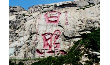 河山位于日照市區(qū)北十公里處,以“眾河之源”得名,海拔628米,高度為日照東部群峰之首,大有拔地凌霄之勢(shì),巍巍聳立,誠(chéng)謂“峭壁端嚴(yán),屹然一邑屏障”。河山山勢(shì)崢嶸,氣勢(shì)雄偉,遍布古跡,處處勝景,使游人大有登泰山之感。代表日照現(xiàn)代形象的巨書“日照”兩字刻于河山懸壁之上?!叭铡弊珠L(zhǎng)20米,寬17.5米:“照”字長(zhǎng)25米,寬 25.5米。它是漢字摩崖石刻的世界之最,載入世界吉尼斯大全,給河山增添了一大景觀。