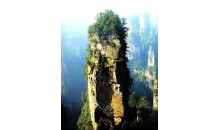 黃石寨南天一柱登黃石寨的途中,約一半的路程處,南天門上行120米.南天一柱又稱指天峰,位于天子山索道上站右側(cè),沿公路下行250米處,一峰依谷而立,沖天而起,柱峰高200余米,下大中細(xì),頂呈鑼槌形。峰頂叢生蒼松,直指藍(lán)天。