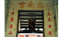 廣州三元宮是嶺南現(xiàn)存歷史較長、規(guī)模較大的道教建筑。據(jù)史書記載為東晉時(shí)南海太守鮑靚所建,明代萬歷年間重修時(shí)始稱三元宮。三元宮坐北朝南,在越秀山南麓,依山而建,漸次升高,現(xiàn)存各殿堂建筑總面積約2000平方米,布局以正對山門的三元殿為中心,殿前拜廊,東西連鐘鼓樓。大殿后為老群殿,大殿兩側(cè)自南向北,東側(cè)為客堂、齋堂、舊祖堂、呂祖殿;西側(cè)缽堂、新祖堂、鮑姑殿等建筑。